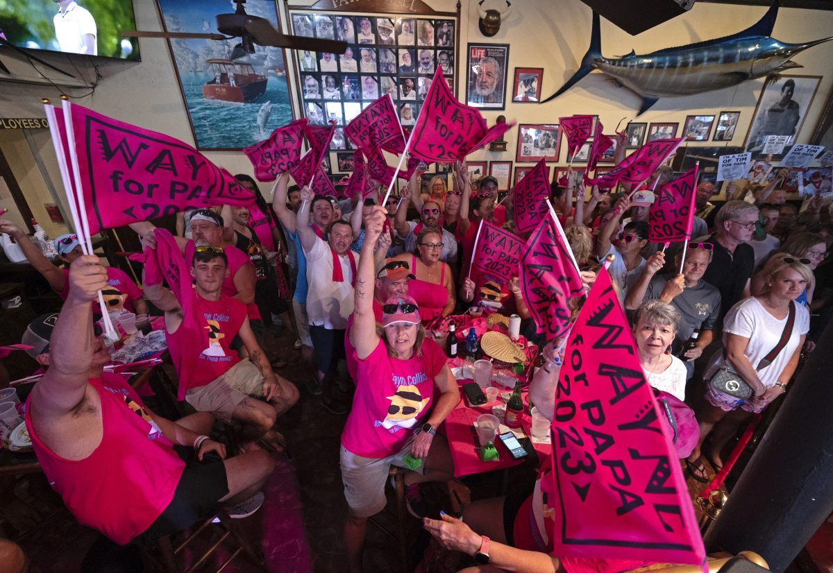 In this Saturday, July 22, 2023, photo provided by the Florida Keys News Bureau, fans of Wayne Collins cheer for their contestant as he competes in the annual Hemingway Look-Alike Contest at Sloppy Joe's Bar in Key West, Fla. The competition was a highlight of the annual Hemingway Days festival that ends Sunday, July 23. Ernest Hemingway lived in Key West throughout most of the 1930s.