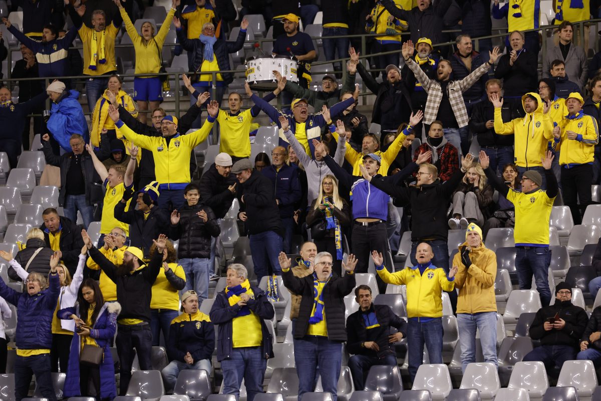 Fans chanted “All together, All together” inside the King Baudouin Stadium after the match was halted, with thousands of supporters from both sides also shouting “Sweden, Sweden!”