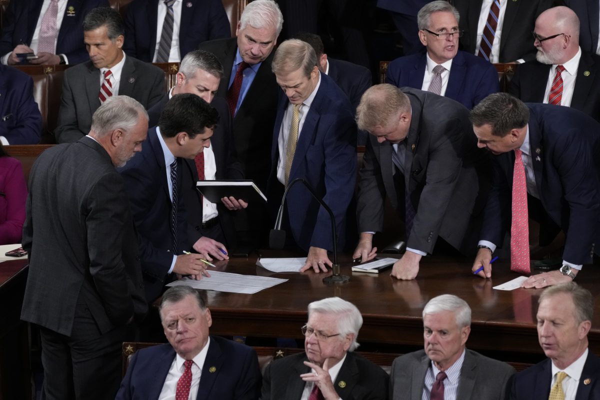 Jordan conferred immediately afterward with McCarthy, who fared nearly as badly in January, having lost almost as many votes on the first of what would become a historic 15 ballots for the gavel.