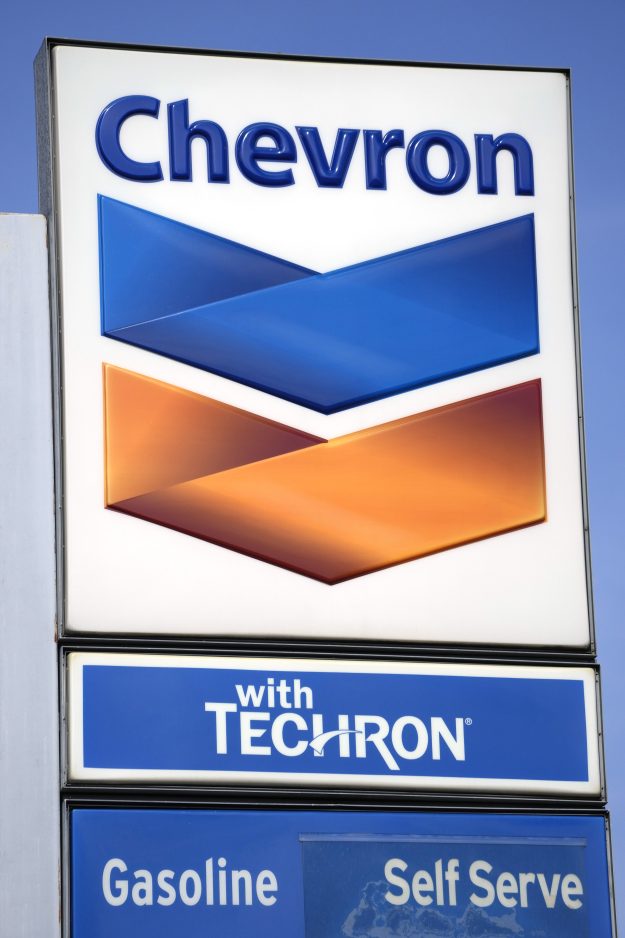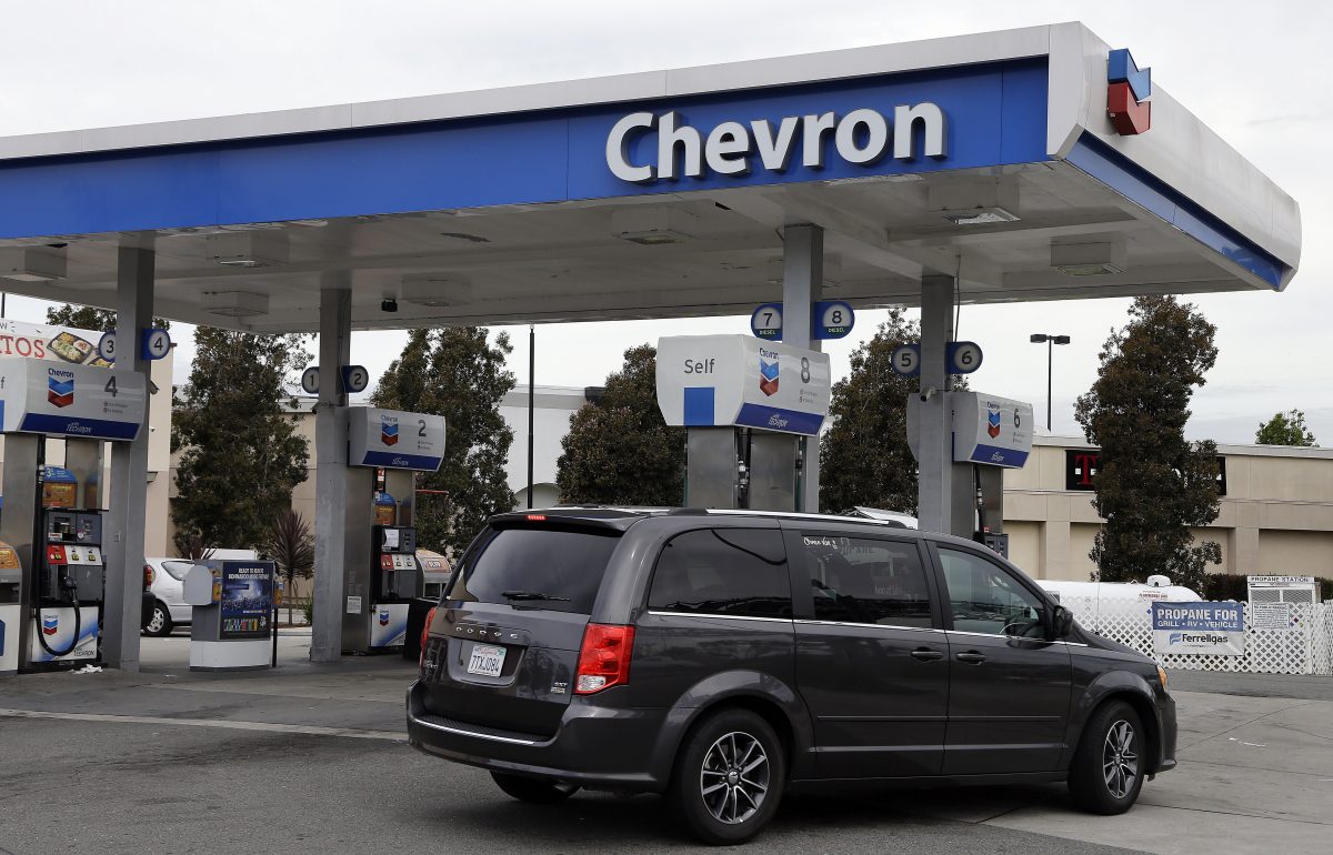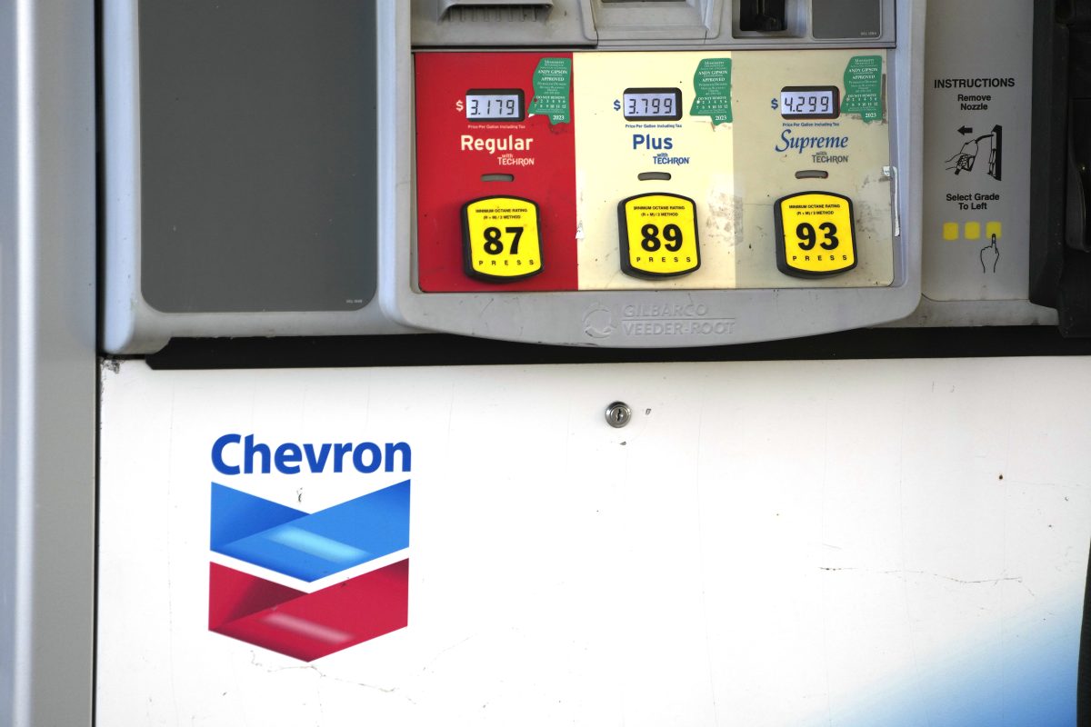 Shares of Chevron Corp., based in San, Ramon, California, declined more than 3% Monday. Share of Hess Corp., based in New York City, fell slightly.