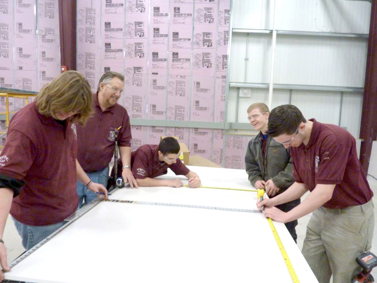Working in two teams, nine teenage students were measuring drywall, cutting it, preparing it for the frame of a structure that didn’t exist a few months earlier.