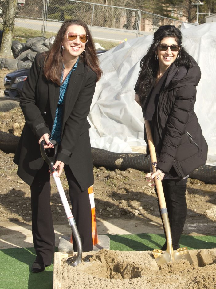 Representing the Peters Township Chamber of Commerce, Marcy Santel, left, and Megan Chicone participate in the ceremonial groundbreaking.