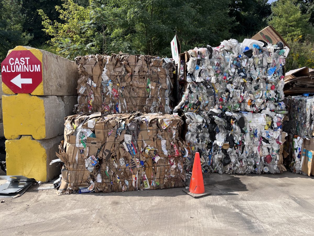 Plastics and cardboard are placed in balers, which compress those recyclables into large, tight squares that are transported to buyers where they are processed and gain a new purpose.
