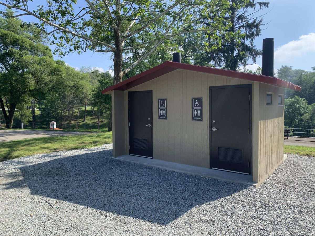 The new comfort station building has been installed and is open for business. New changing tables are on their way, delayed due to COVID-19, and will be installed as soon as they arrive. Our original completion date was in June, and we are excited that this project remained on time for all the park’s activities. The building houses two family restrooms, each eventually with a baby changing station, located near the Velma Jeffreys playground. Rentals are still available for the new VFW Pavilion at a low introductory price of $75. It features a stainless steel buffet table with a storage area, capacity for 50-60, adjacent to a playground, electrical outlets, a new grill and plenty of parking.