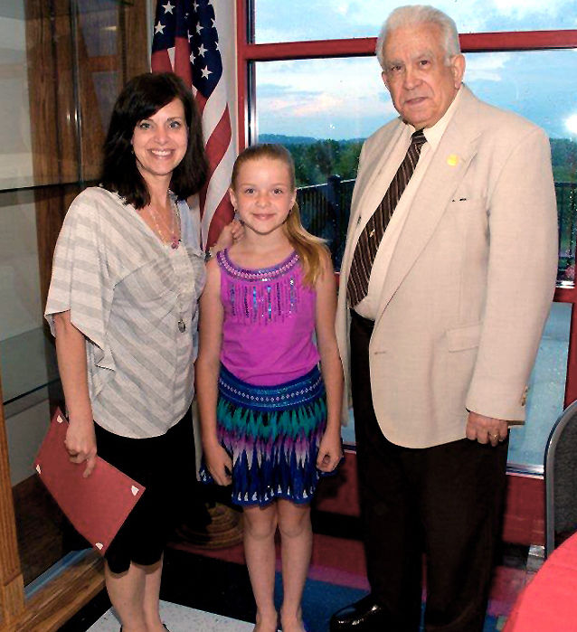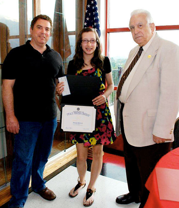 Charleroi Lions Club recently recognized six poster contest winners at its annual Awards Night and Dinner. Hannah McCurdy, left, placed first in the Peace Poster Contest for middle school students. The seventh-grader won $100. She is shown with middle school art teacher Michael Flaherty, left, and Robert Rossi, program chairman for the Lions. Seventh-graders Hallie Anthony placed second and won $75, and Victoria Anders was third and received $50. Fourth-grader Shaylee Barber, right, placed first in the Drug Poster Contest for elementary students. She won $100. She is shown with art teacher Diana Welch and Rossi. Fifth-grader Jonathan Koteles placed second and won $75, and fourth-grader Lexi Perry was third and received $50.