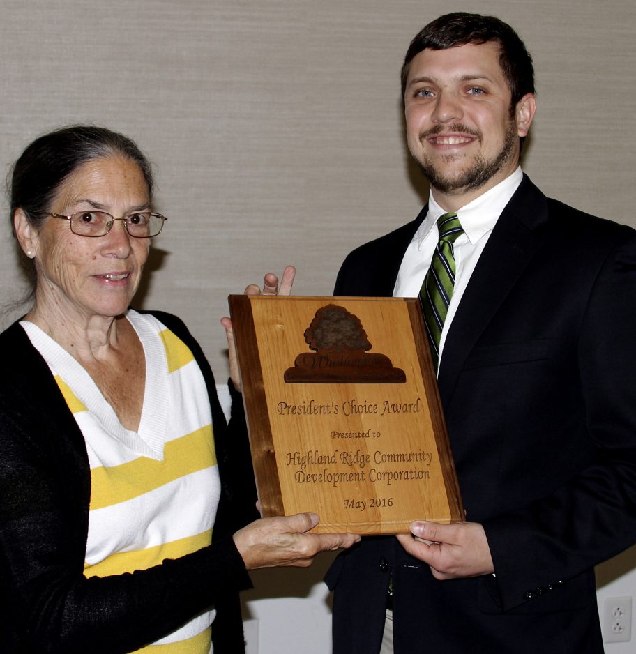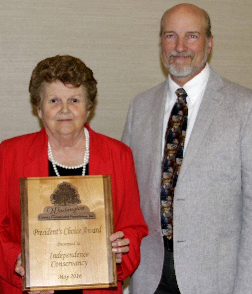 The Washington County Community Foundation recently presented the President’s Choice Award to two nonprofits. The Highland Ridge Community Development Corp. and Independence Conservancy each received $10,000 unrestricted grants from the foundation’s Acorn Fund. The President’s Choice Award, previously the Director’s Choice Award, has been given annually for eight years. The award assists small, but developing charities in the manner that the foundation’s earliest donors helped it. This is the first time the foundation has been able to issue two of these awards in the same year. Highland Ridge Community Development Corp.’s initiatives were lauded for returning a sense of community to the City of Washington’s Highland Ridge neighborhood, which has suffered from blight and crime. It assists low-income senior citizens, families, veterans and others. Its Mending Fences program taps volunteers to make repairs and renovations for homeowners in need. It also operates a Staying Green gardening and cleanup program in its efforts to improve the educational, academic, social and economic climate of the community. Using land trust standards and practices, the Independence Conservancy preserves land in Southwestern Pennsylvania to protect open space, wildlife habitat, natural and cultural resources, scenic views and quality of life. It also owns and manages the Abandoned Mine Discharge treatment systems in the Raccoon Creek Watershed, which has its origins in Washington County. It is establishing the Langeloth Valley Conservation Area near Burgettstown, which will permanently preserve 73 acres of woodlands, wetlands and streams south of the former American Zinc & Chemical Co. smelter site. The conservancy has achieved more than $1.5 million of environmental reclamation and land preservation since its founding in 1999. Above left, accepting the award for the Highland Ridge Community Development Corp., left, are president Sandy Mansmann and board member Justin Dandoy. Above right, accepting for the Independence Conservancy are president Peg Schweinsberg and board member Gary Stokum.