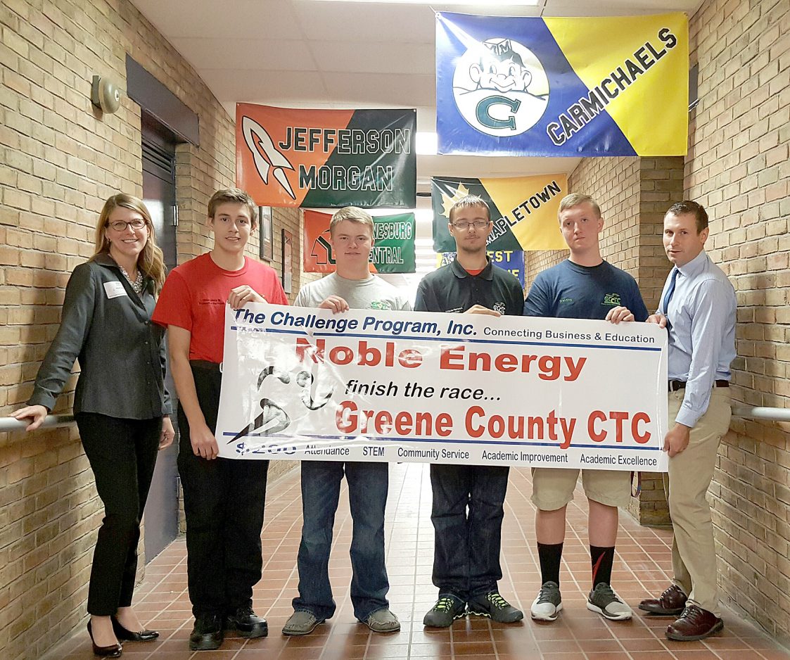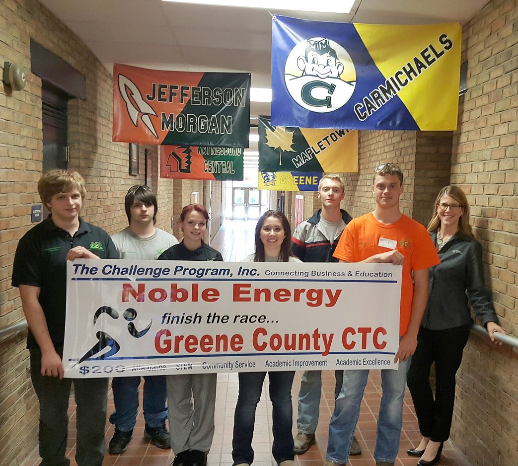 To kick off the 2016-17 school year, students from Greene County Career and Technology Center were introduced to the Challenge Program Inc. The theme was an Olympic trial that demonstrated the interview screening process to help students qualify for success. During the assembly, students were introduced to local career opportunities with the CTC’s business partner, Noble Energy. Throughout the year, students will be eligible to compete for financial awards in five areas linked with academic and workplace success, attendance, academic improvement, academic excellence, STEM and community service. The 2015-16 Underclassmen Award winners were, above, from left, Stacey Brodak of Noble Energy; Garrett Vincent, academic improvement; Walker Smith, STEM; Skylor Bowser, attendance; Jacob King, academic improvement; and Mark Krupa, Greene County CTC director; and below, Zachariah Kerr, community service; Alex Kerr, attendance; Haley Hice, academic excellence; Madison Six, academic excellence; Ryan Woods, STEM; Patrick Brady, community service; and Brodak.