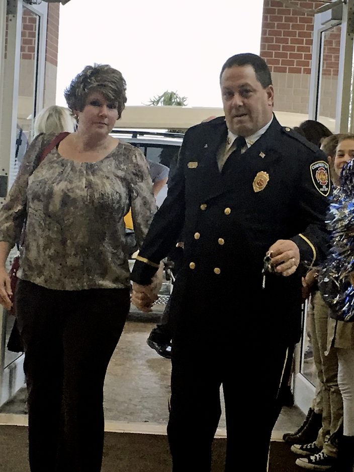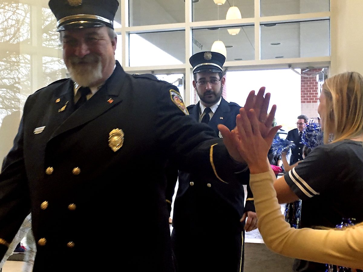 But when they arrived, the more than 230 police officers, firefighters and emergency medical workers and their families were greeted with cheers, waving pom-poms and high fives from members of Central Assembly of God Church in Houston, which hosted the event, co-sponsored by Columbia Gas of Pennsylvania.