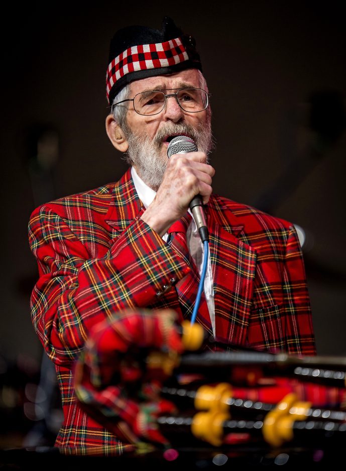 “At some point, he got involved as one of the performers playing his bagpipes,” Molzon said. “He would also sing a duet with our original singer, Jeannie Clark Fisher, usually a show tune.”