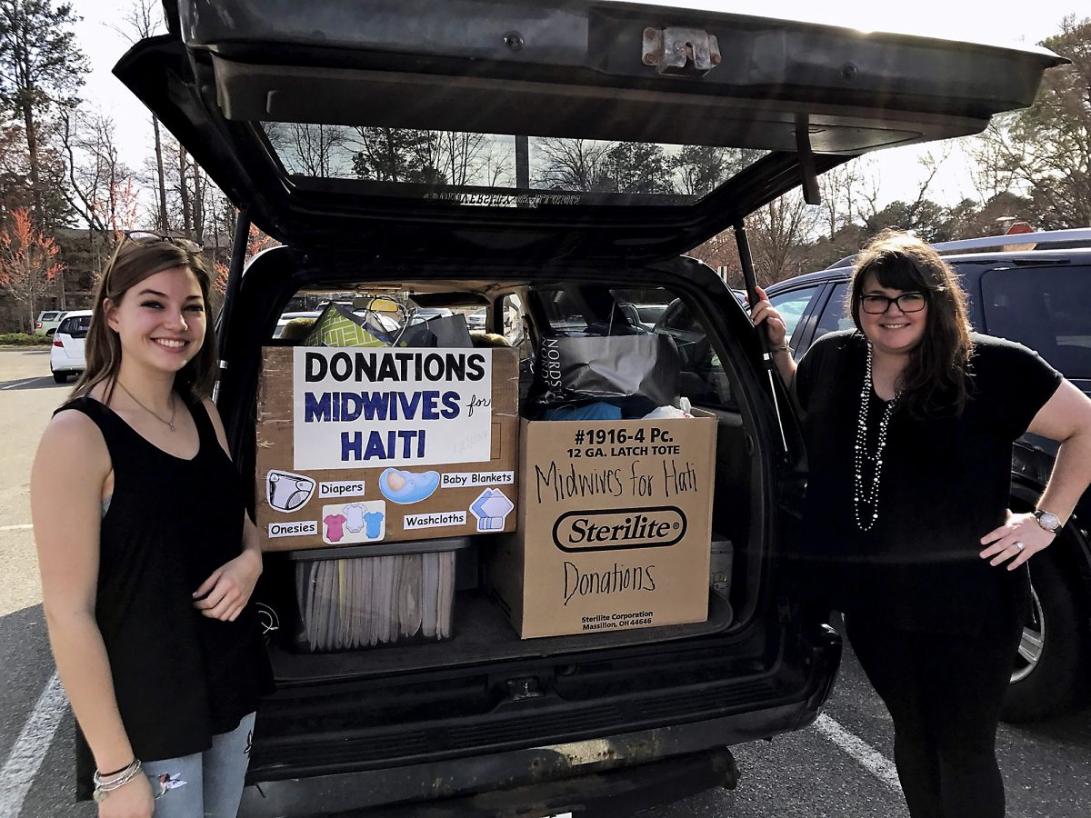 She had the recent opportunity to visit Midwives for Haiti’s administrative office in Richmond, Va., to deliver supplies that students in the high school’s French Club and National Honor Society collected during a baby items drive. There, she met administrative and development coordinator Kirby McConkey Butler, who will take the items when she travels to Haiti.