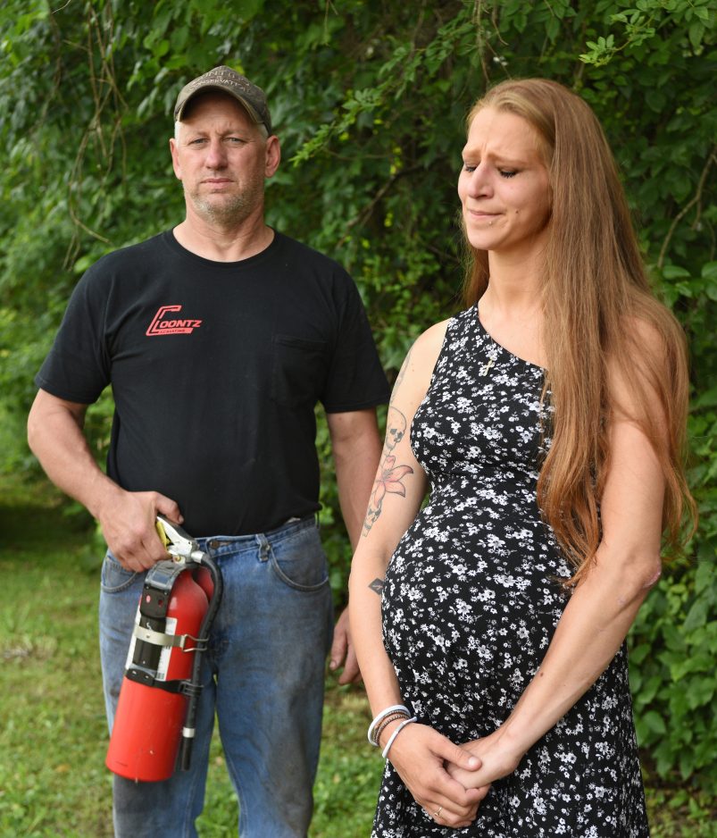 Rumble and his son, Tyler, 21, went through five extinguishers, but the blaze continued to reignite. Rumble realized he had to remove her from the car, but gently to avoid further injury. He pulled the steering wheel loose, providing her room, then with the help of a Cheat Lake firefighter, who had fortuitously stopped, they lifted the victim gingerly through the driver’s window.