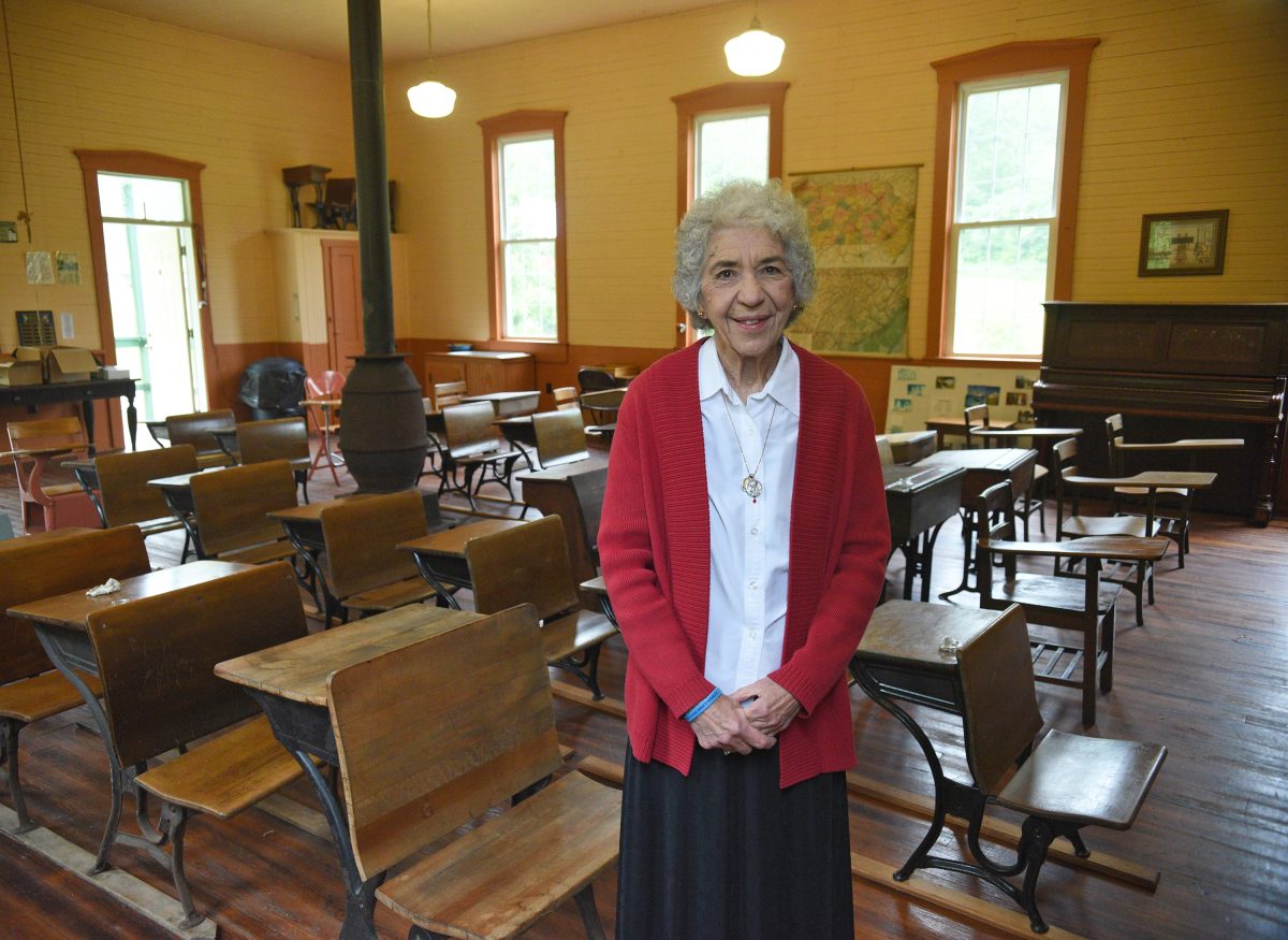 “The stove here,” she said, tapping the old-style pot-bellied heat source smack dab in the middle of the room, “if the weather is cold, you gather coal the day before and put it in the stove and the teacher would start the fire the next day.”