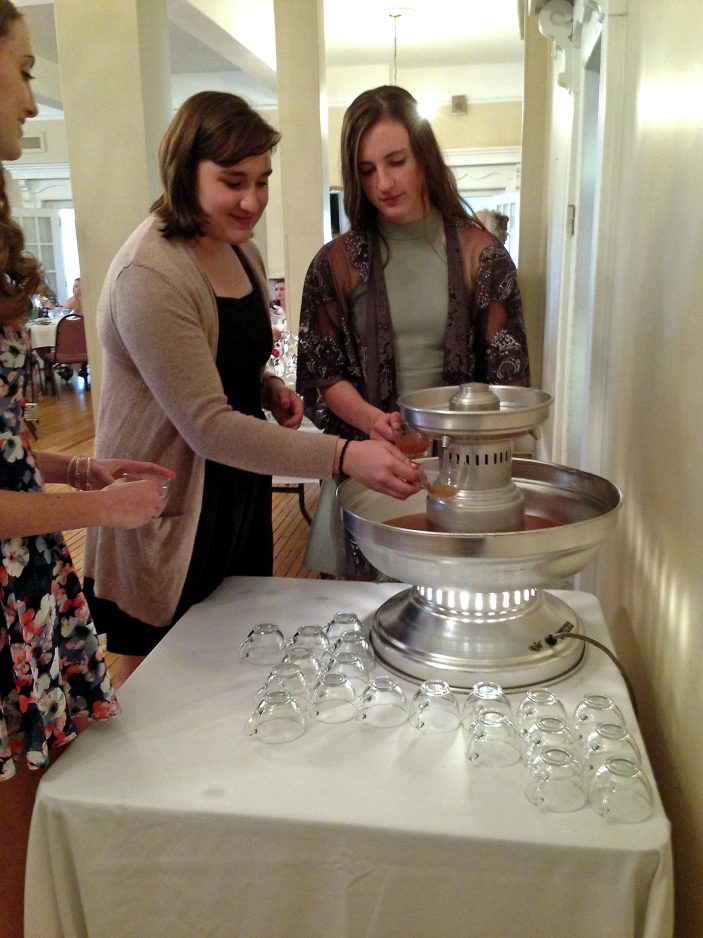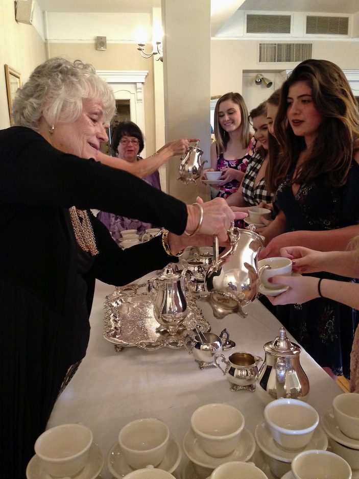 The girls were treated to a buffet-style lunch that included hamburger sliders, fruit, cheeses, vegetables and an assortment of desserts, and, of course, tea, along with coffee and punch.