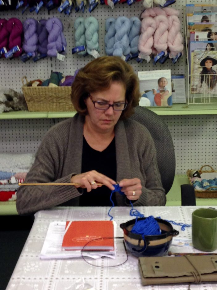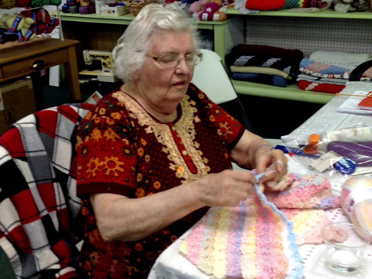 Now, she likes to make baby clothing, with samples of her work hanging throughout the store, and she knits all of her Christmas gifts.