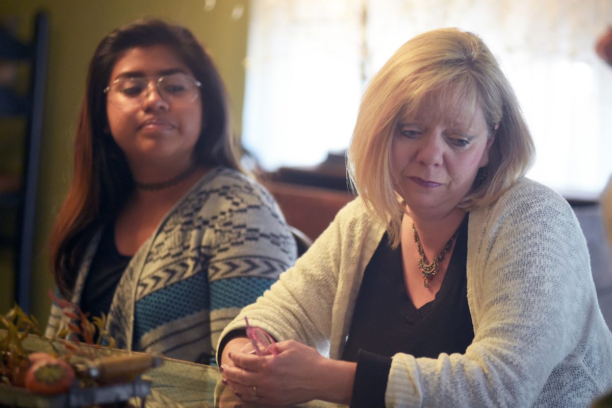Paula Zeiler, right, discusses the importance of Debbie Hampson, left, in the Zeiler family’s lives and the effect she had on daughter Lexis.