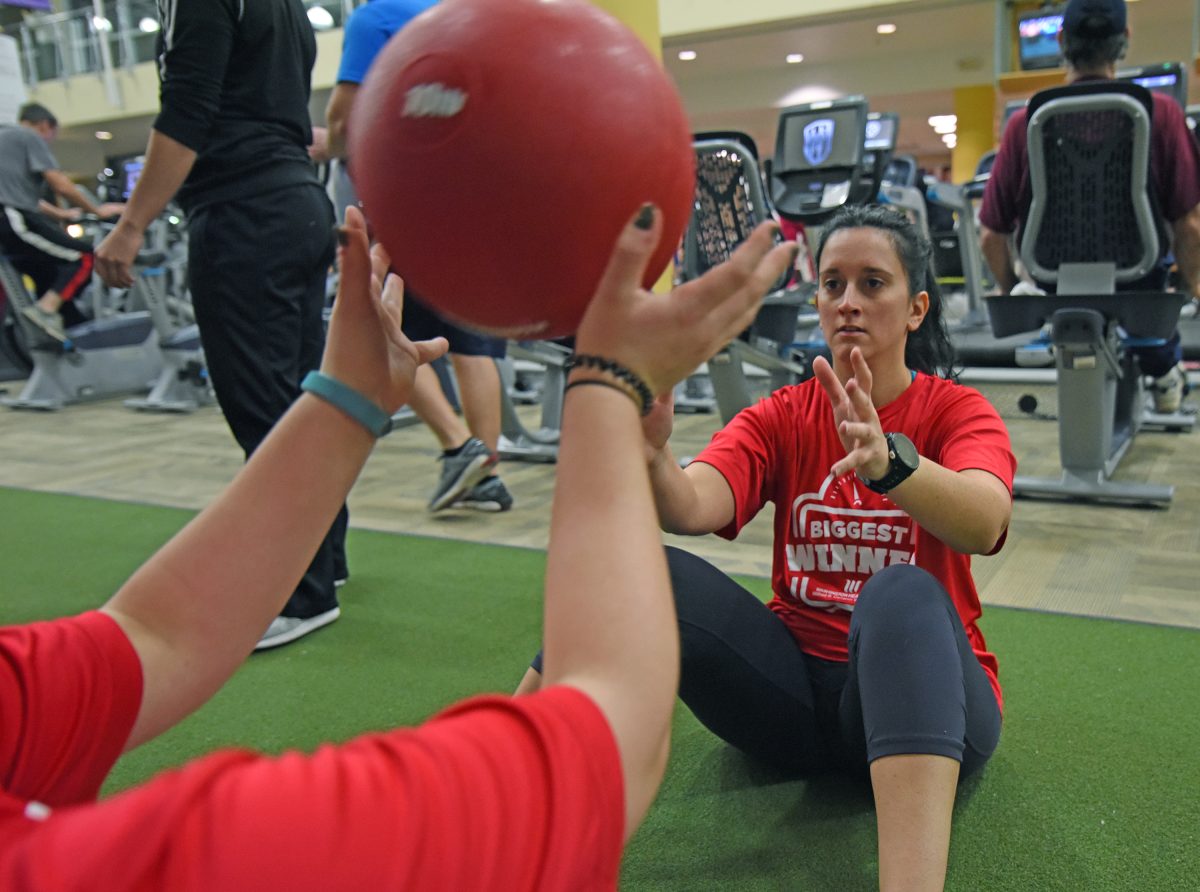 “So far, so great,” says Nikki Popielarcheck, who is on the team with her husband, John. “Yes, we are sore, but it’s the ‘good’ sore.” Nikki and John join the other four members of the O-R team four mornings a week for workouts at the Washington Health System Wilfred R. Cameron Wellness Center with personal trainer Kortlyn Carr. Nikki says Carr makes them work hard but keeps it interesting. “Her attitude and positive energy are amazing,” says Nikki. “I am keeping track of our daily exercises so I can go back and do them on my own once the contest is over.”