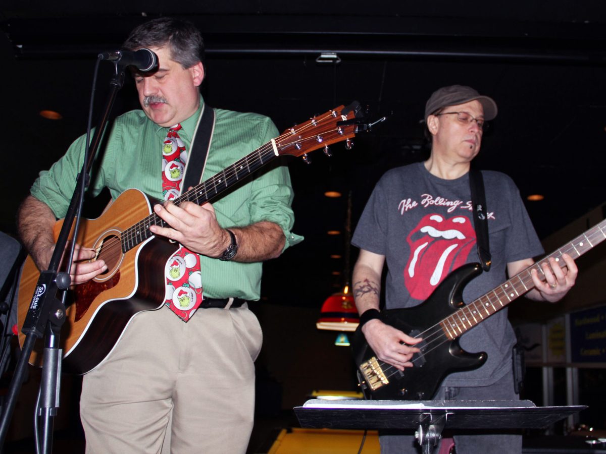 Bob Giacometti, right, plays bass while The Almanac staff writer Harry Funk plays a guitar in 2012 at what then was BLVD in Cecil Township.