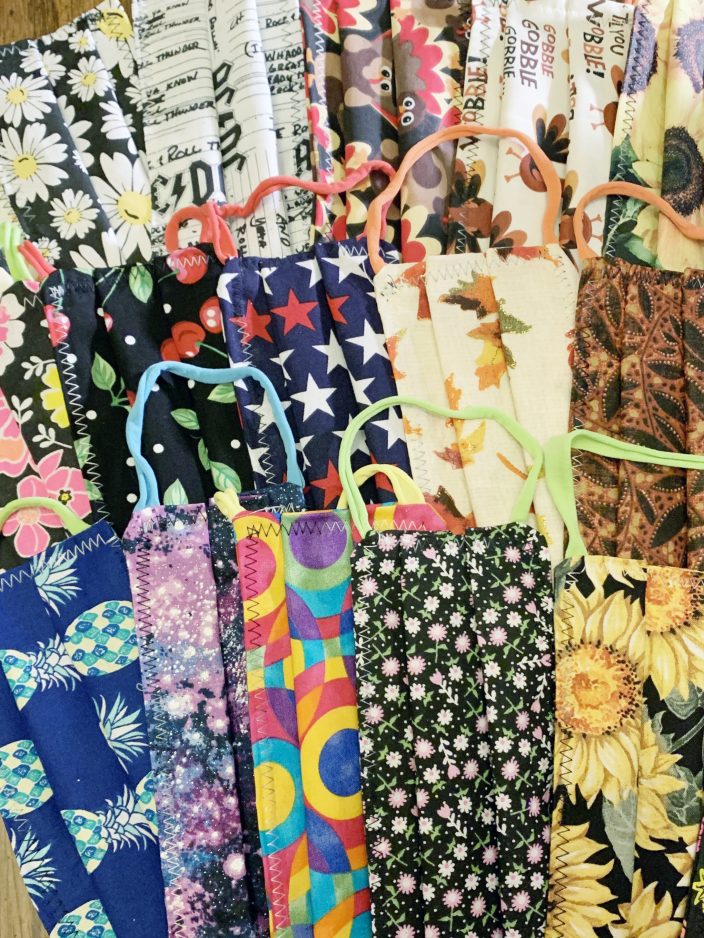 Her mother has made hundreds of ear savers – buttons to loop the mask around that make mask-wearing more comfortable.