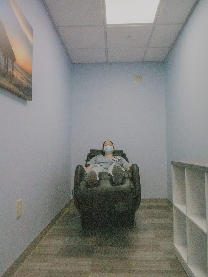 “(The staff) needs a place to decompress, instead of running into a bathroom to deal with something stressful and then having to come back out and still take care of patients after they’ve just gone through something really traumatic,” said nurse Shellie Popeck, director of CCU. “Sometimes, it’s just that you’re having a really bad day. All of the pressure from the pandemic builds up.”