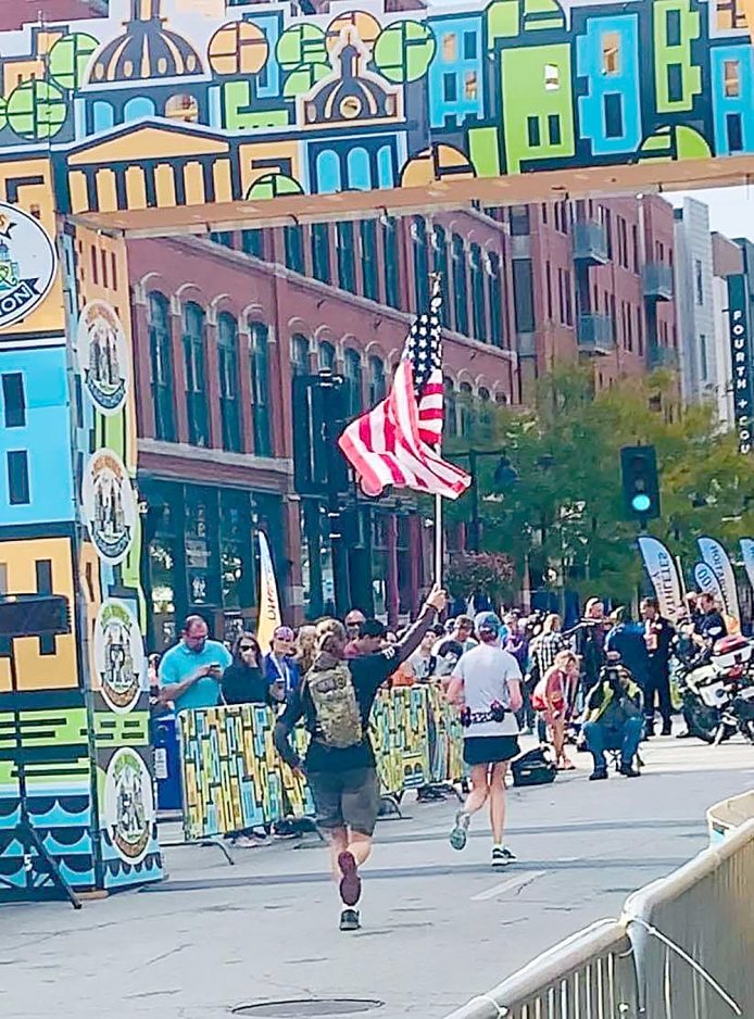 In honor of the 13 fallen Army comrades, Clark has run a half-marathon nine of the 10 months this year. The exception was October, when she entered her first full marathon – in Warman’s honor. Clark held up an American flag the entire 26.2 miles.