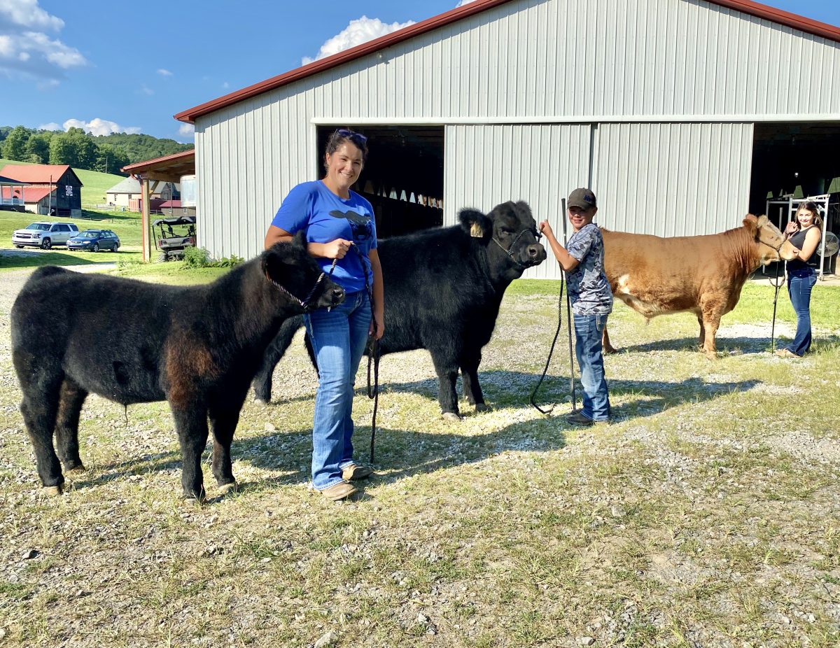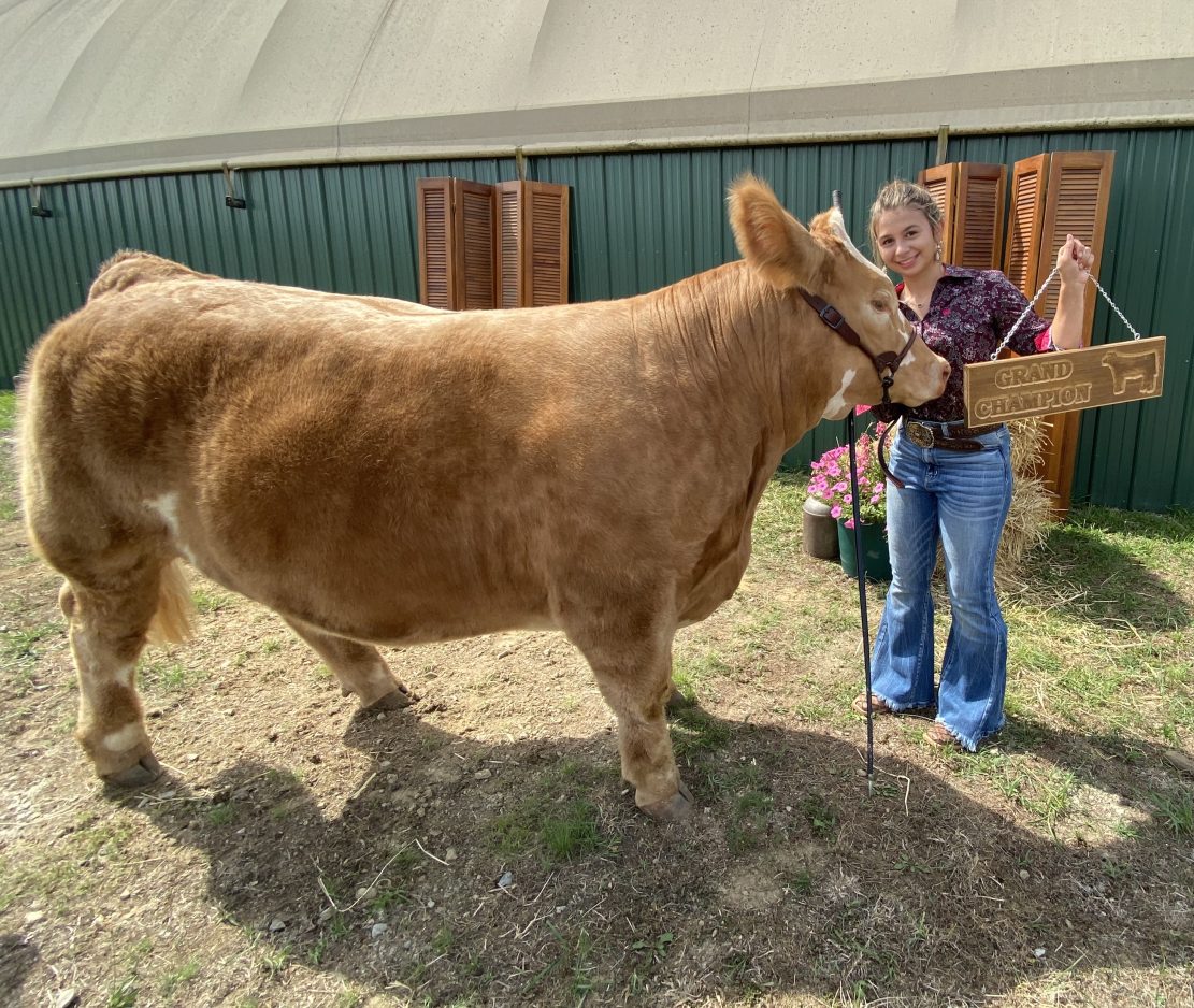 Arena Lane is just on the other side of the West Virginia Line near Mt. Morris and ends in the middle of the Casto farm. 4-Hers can cross state and county lines to join a club but must limit their participation to one county or state. The Castos have “always run cattle,” and the modern steel barn that was once used as a stable had an indoor arena for rodeos. Now, it’s where first-year 4-Her Kade Casto, 10, and Lila Perroots, aging out at 19 and a sophomore at West Virginia University, keep each other company as they feed, exercise, bathe, brush and blow-dry Harry and Lloyd, two massive, sleepy-eyed market steers. In another stall, Kade’s market steer for next year is in waiting. He was born on the farm in February – is freshly weaned and weighs about 425 pounds. Last fall, eight-month-old Lloyd weighed 750 pounds at the club’s official weigh-in. By the time he gets to the Greene County Fairgrounds, he will be 1,408 pounds and ready to wow the judge.