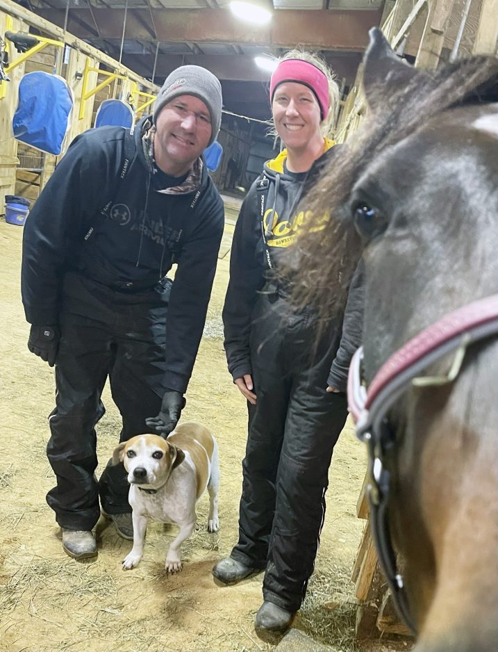 Nick Roland is a “fourth generation horseman, his mom and dad both raced,” Johnson tells me. He took his written exam, got his licenses to train and drive at age 16 and “put himself through college on his summer winnings.” By 2008, Roland could finally quit selling insurance and race full-time. They met at a racetrack in Minnesota where Johnson was training riding horses. Two years after she started working for him, “we started dating.” That was 11 years ago. “Now we’re partners. I’m covered in dirt every day and couldn’t be happier!”