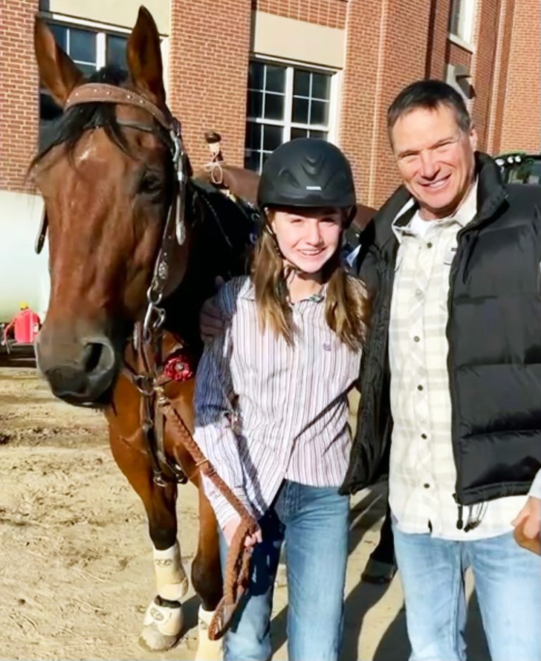 I asked for a photo of him for the story, and he says he has one with youngest daughter Sophie, 13, when she finished in the top 10 in her age class at the Barrel Racing Congress in Cleveland, Ohio, in October. “She’s barrel raced at the fairgrounds many times. I’ll send it over when I get home.”