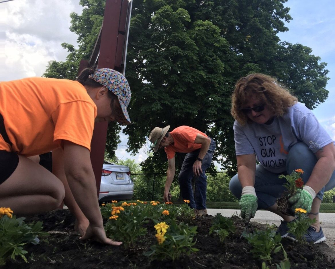 This year, they planted 111 orange marigolds, each representing one of the lives taken daily in the U.S. by guns.