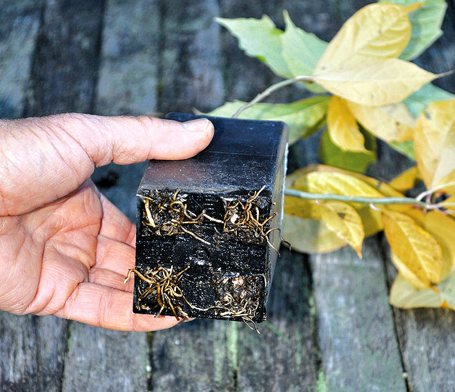 Finally, prune the stems so the reduced root system has fewer leaves to support. Besides, the whole purpose of root pruning has been to keep the plant from growing larger.