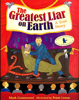 The Greatest Liar on Earth: A True Story by Mark Greenwood and illustrated by Frané Lessac (Candlewick, 2012, 32 pages, $16.99 hardcover)