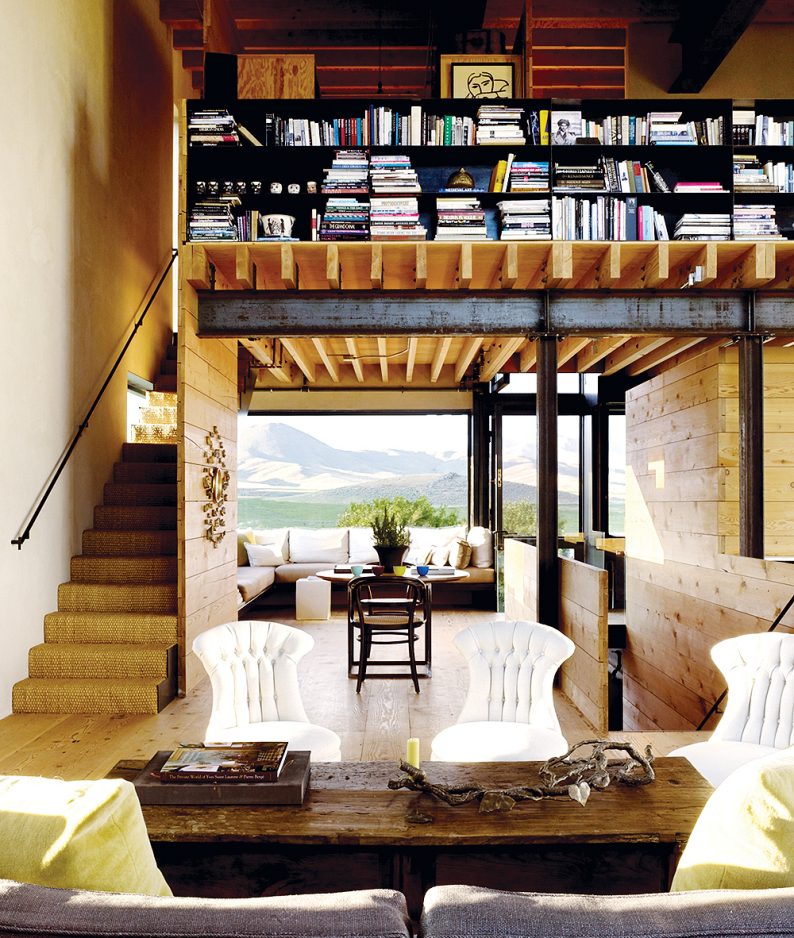 While the boxlike modern structures appear austere, the interior treatments bring a warm, human touch that is comfortable and inviting. In the high desert of central Idaho, architect Tom Kundig designed a home for artist and designer Jan Cox that had to be “hard outside and soft inside.” Concrete walls of the three-story setting stretch out to envelop a paradise garden. The living room, dining room and kitchen of the steel-frame-and-concrete structure are open-plan. Interior wood walls and floor warm up the steel. White padded seating with soft lines and curvy shapes balance the hard edges. A narrow fir staircase with sisal carpeting leads to the mezzanine bedroom above the kitchen. Skirting the mezzanine are shelves filled with books; their spines and covers add color and take on an aspect of a floating work of art. Windows, some as large as 8 feet by 11 feet, open the fortified structure on all four sides to the desert and distant mountains.