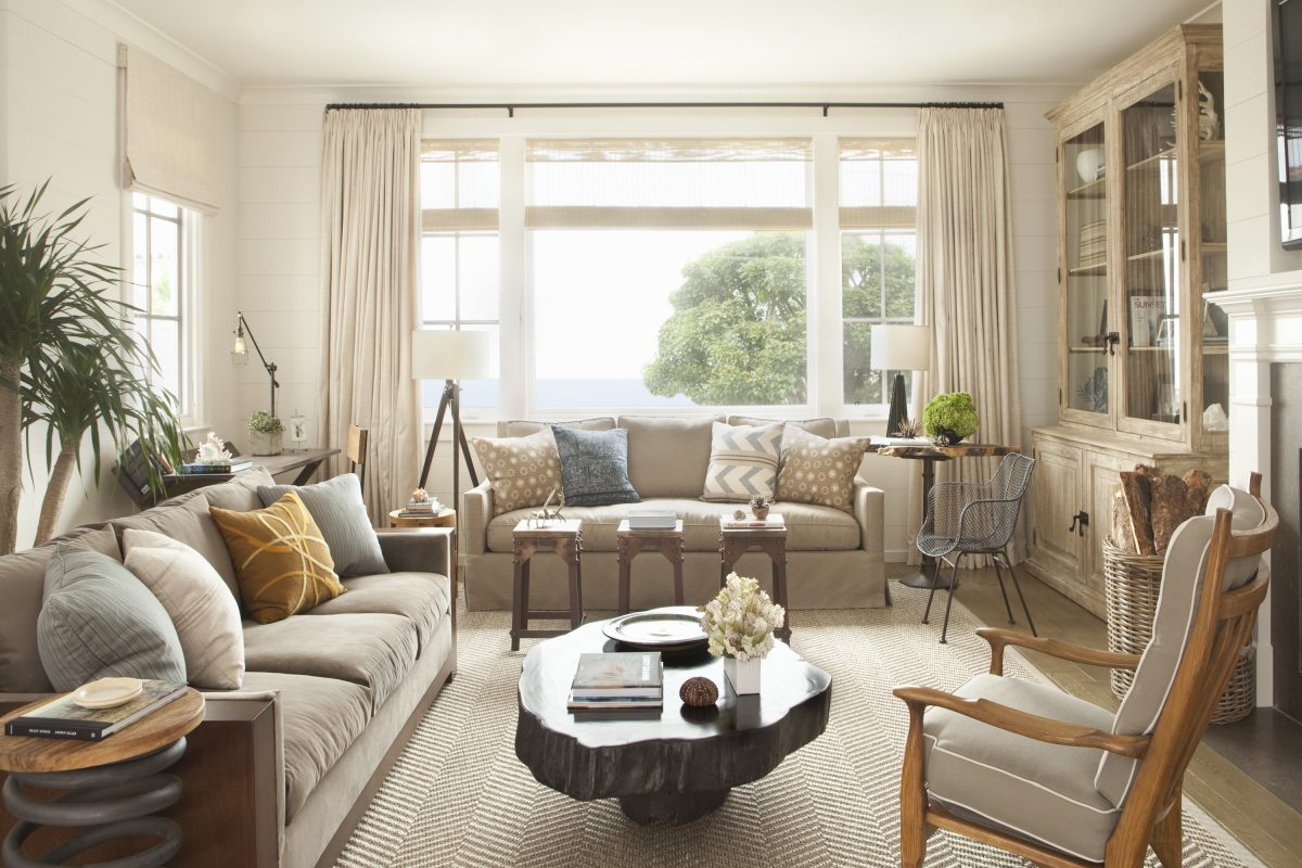 The key with these materials, says Burnham, is moderation. Materials like rope or weathered wood are great “as long as you don’t have a room full of any of those items. One sisal carpet, a rattan chair or a rattan seat on a wood chair,” is all you need, says Burnham.