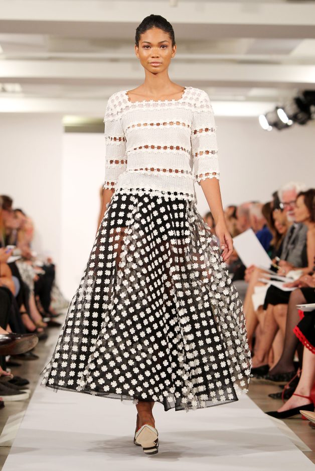 She always has a youthful style, but this time, she didn’t go too young. The blousoned chiffon styles, lovely crochet lace sweaters and vests, and dresses with a touch of mesh, were a little more adult.
