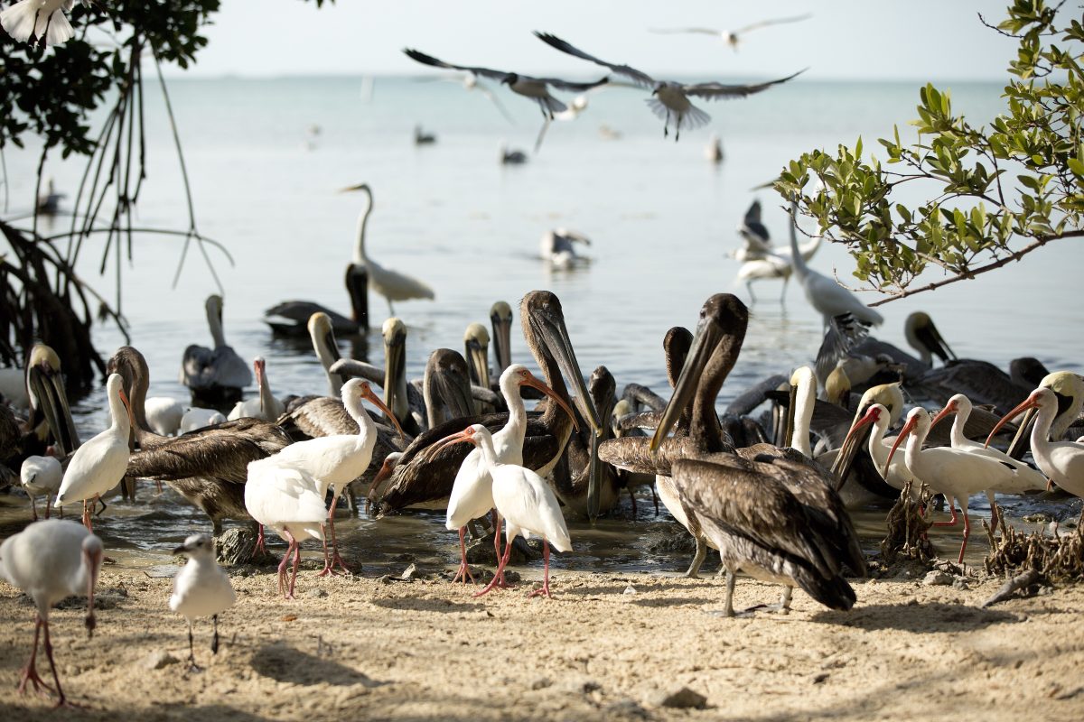 Also in Key Largo, the Florida Keys Wild Bird Center (near mile marker 93) is a sanctuary for rescued and rehabilitated wild birds, http://fkwbc.org . You’ll see falcons, owls, cormorants and more in large cages, but there are also wild pelicans freely strolling about. More wild birds can be found on the beach nearby. Admission to the center is free but donations are encouraged.