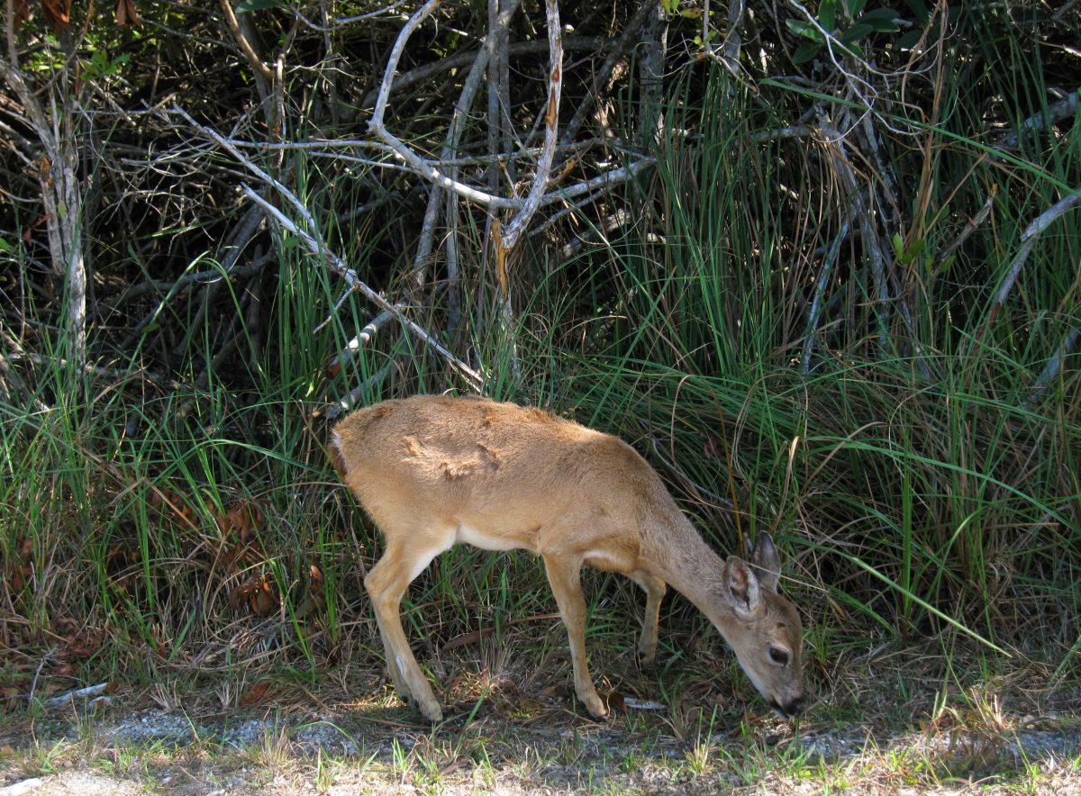 As you get to the Lower Keys, signs warn you to slow down and watch for Key deer, an endangered species. The small animals with white tails can often be seen by the roadside in the vicinity of Big Pine and No Name Keys, which are part of the 8,000-acre National Key Deer Refuge, http://www.fws.gov/nationalkeydeer/.