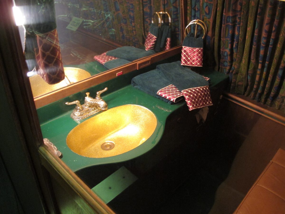 The larger plane, a Convair 880 named after Presley’s daughter Lisa Marie, is like a customized flying limousine, complete with a large bed, a stereo system, conference room and gold-plated bathroom fixtures. It was renovated after Presley bought it from Delta Air Lines. Presley took his first flight on it in November 1975.