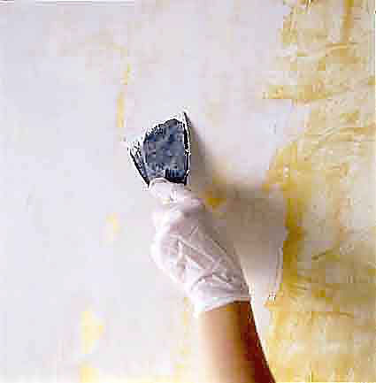 There are different types of plaster available for wall applications that you can do yourself. Venetian plaster has marble dust mixed into it – unlike traditional stucco – and can be burnished to a high sheen by rubbing with a spatula or trowel. For the light, smooth texture shown here, I used Venetian plaster. Prime your walls with a good paint or plaster primer before you start. Use a trowel to apply the plaster to the wall, smooth it on and work in a cross-hatch pattern smearing on and taking off the plaster until you have a thin coat covering the wall. Let dry and then apply a second coat, building up a smooth, slightly uneven texture. After each coat dries, sand off any sharp points or stubbly bits.