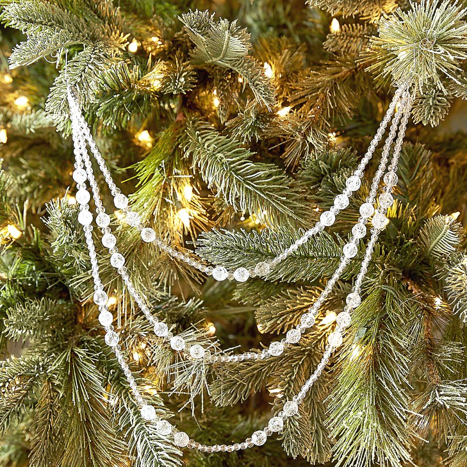 Crate & Barrel’s got a selection of laser-cut, crocheted and curled paper snowflakes in creamy hues of champagne, bronze and white; add a few glittery, beaded ornaments in silver and muted grays.