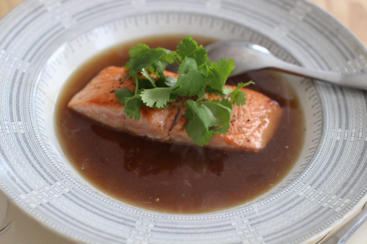 Seared King Salmon with Lemongrass Porcini Jus