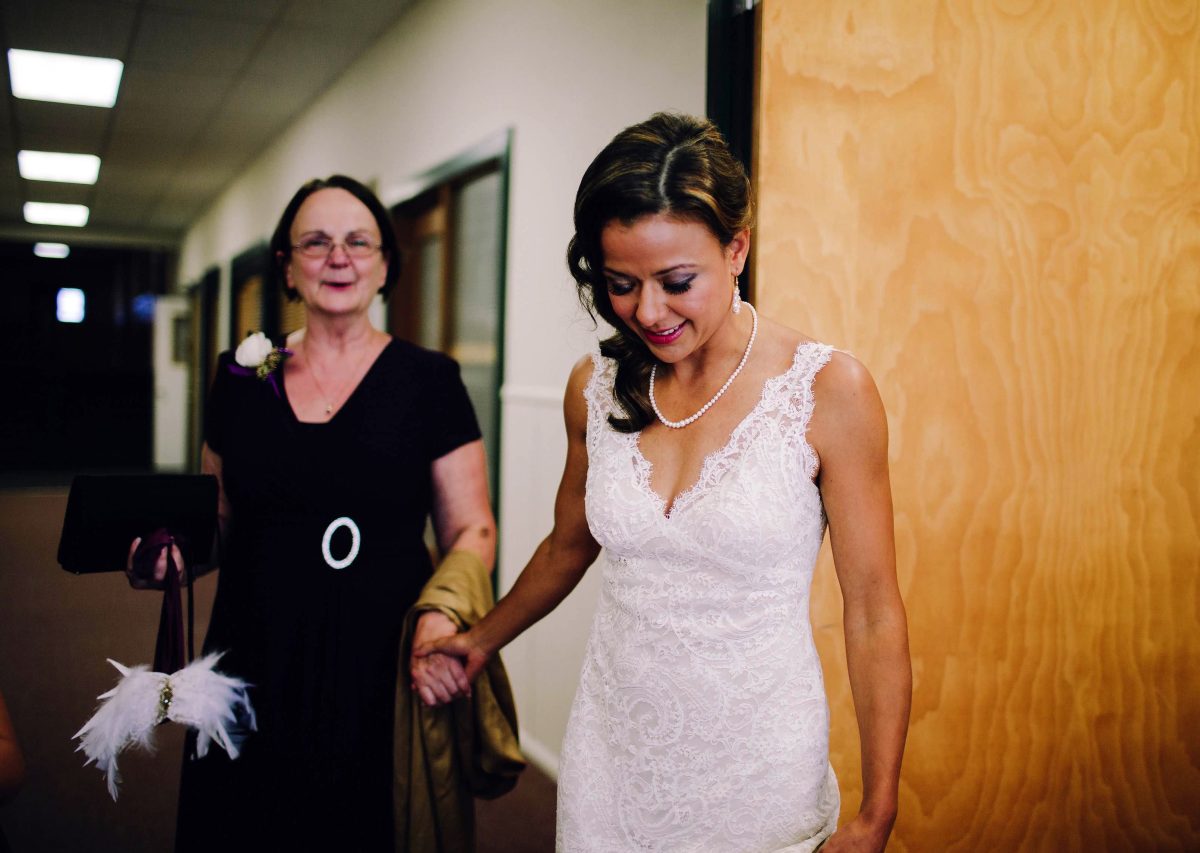 Rebecca Bridge chose a venue in the Smokey Mountains to honor her deceased mother, who loved the area. Her ceremony, while not traditionally religious, included the Lord’s Prayer to honor her mom and fiance Mike Pantoliano’s deceased grandparents.