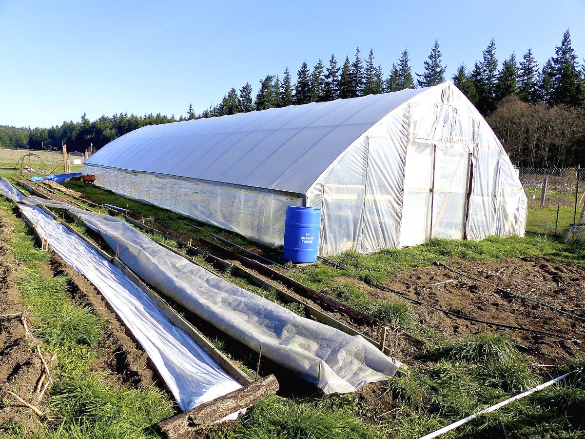 Why build hoop houses rather than more traditional greenhouses? Primarily because they don’t need artificial heat when seasonal temperatures drop.