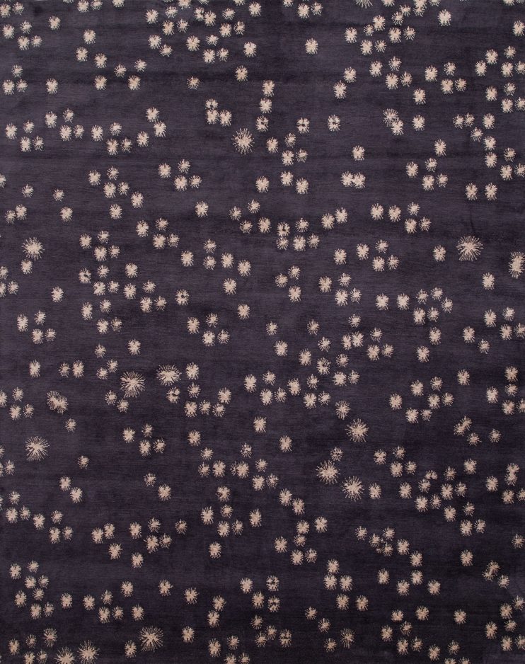 Over at Dering Hall, dozens of little star-like bits dance across a rich plum-colored background on the Japanese Asterisk rug. A Persian Gabbeh has an odd but charming Wes Anderson vibe, with a forest of naïf-style trees in nature hues on a cream background. (www.deringhall.com )