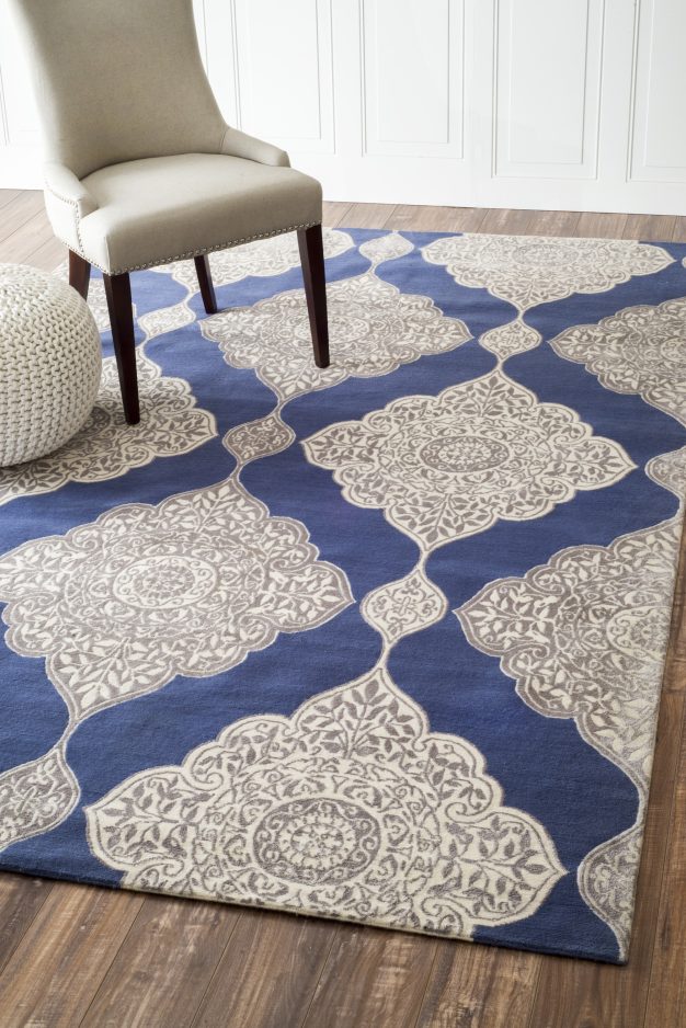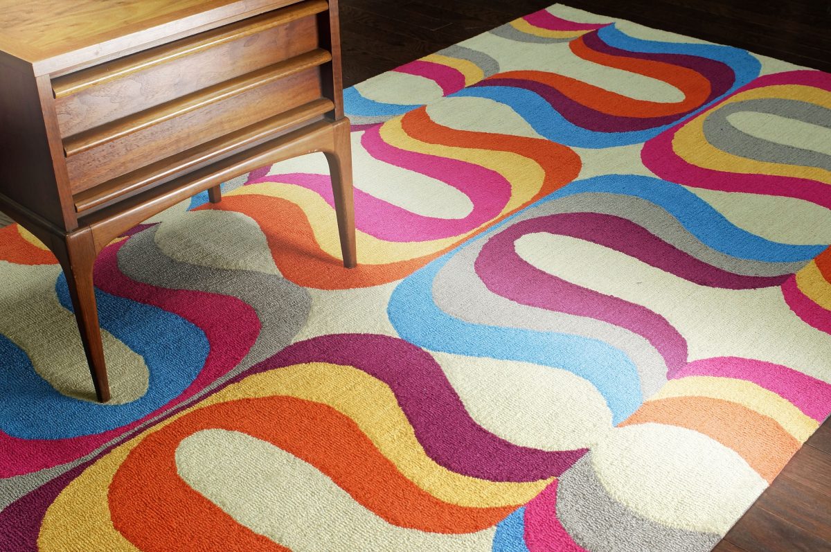 NuLoom has some ikat rugs over-dyed in vivid hues like violet, crimson, cobalt and emerald. In the Kathmandu collection, Nepali craftsmanship transforms New Zealand wool and silk into striking contemporary patterns, including Warhol-esque roses, hand-knotted dots, and an intricate ethnic print in a fun palette of pink, fuchsia, periwinkle and black. The Fiesta polyester rug has a large-scale confetti motif in a couple of color schemes, while the Trevor features a curvy, midcentury modern pattern. (www.nuloom.com)