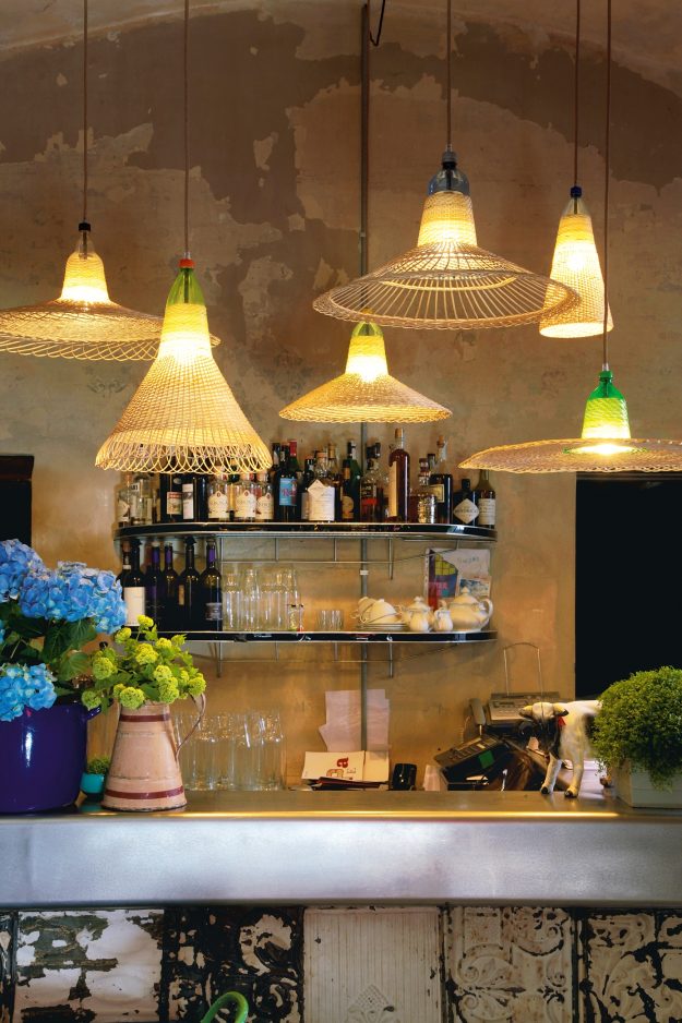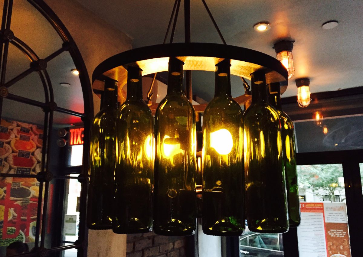 The trend is evident at eateries like Malai Marke, a stylish Indian restaurant in New York City’s East Village, where light in the dining room glows from bulbs surrounded by green wine bottles arranged in a circle, empty but corked.