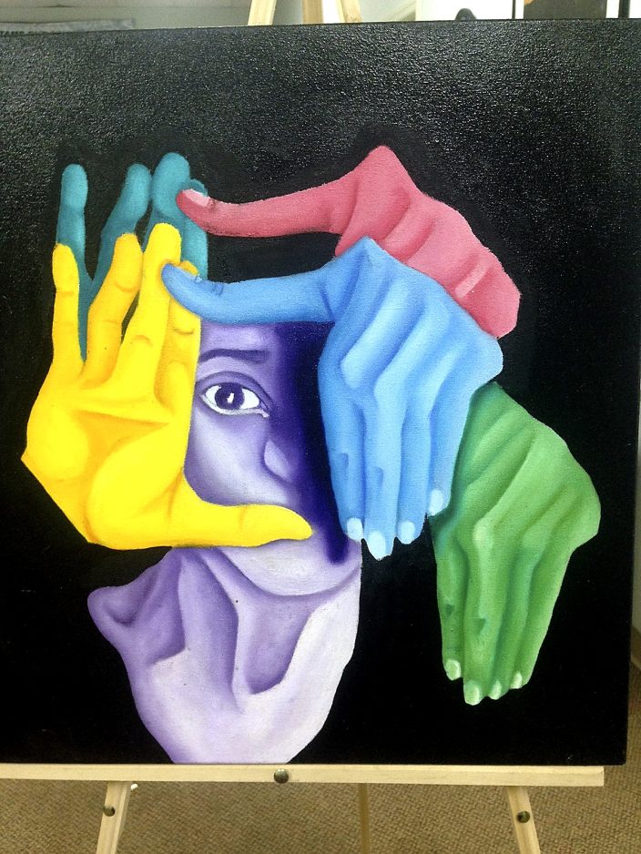 “My painting is a little more abrasive, you could say. It’s activism for mental illness,” Elle said. “It’s my way to communicate things that I’m not sure how to put into words. It represents me. It’s what I see on a day-to-day basis.”