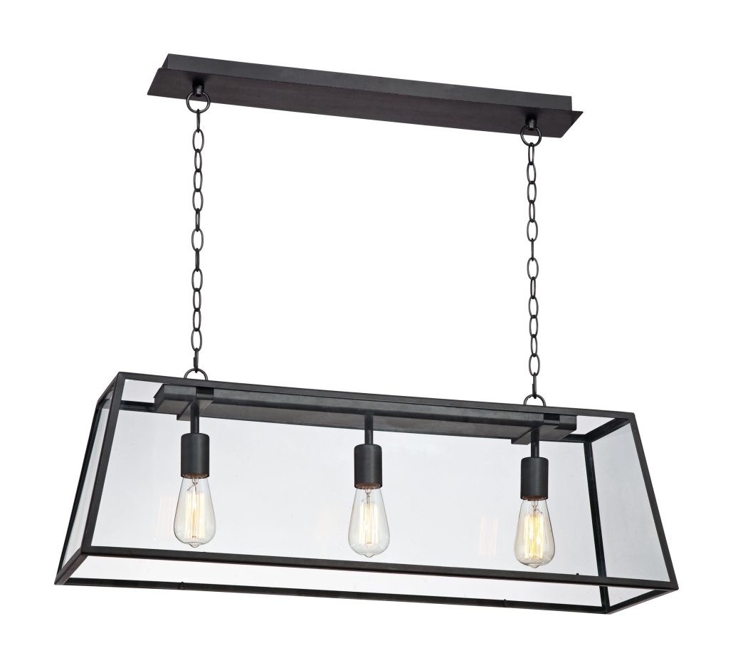 Lamps Plus has forged-iron and rubbed-bronze chandeliers and pendants. Hudson Valley Lighting’s Lydney polished black nickel pendant would work well in any style of kitchen. (www.lampsplus.com ; www.hudsonvalleylighting.com)