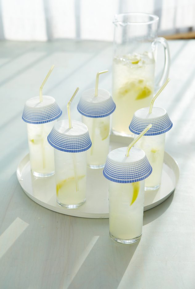 Keep bugs out of beverages by replacing lids with muffin cups and fun straws.