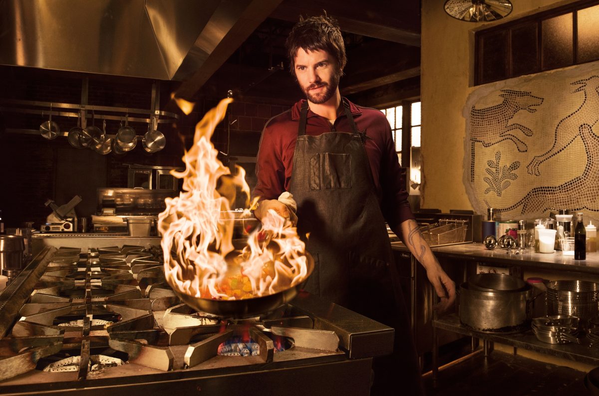 “He’s got a lot of pain he’s trying to escape, and the kitchen is a perfect place,” explains Sturgess. “A chef I spoke to says that, in the kitchen, everything else just disappears. You’re in that moment, and life outside, it just doesn’t exist. So it’s perfect for a man who has a troubled past and a difficult future ahead of him.”