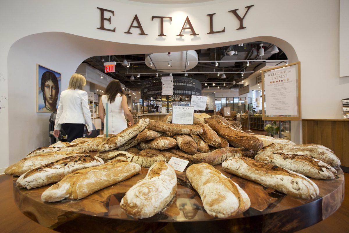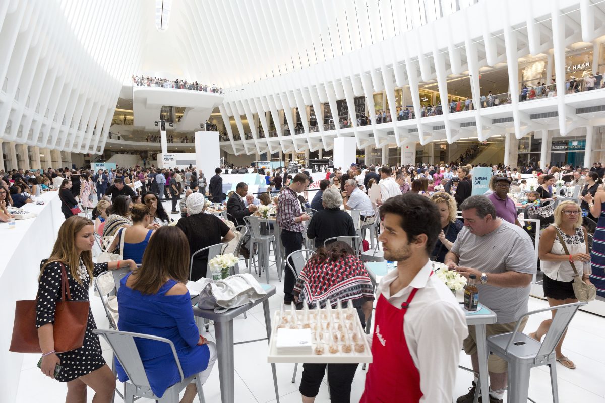 The 365,000-square-foot center will have more than 100 stores, with about 60 already open and the rest by the winter holiday season. Food options include Eataly’s second Manhattan location, which features foods from Italy, coffee and gelato bars.