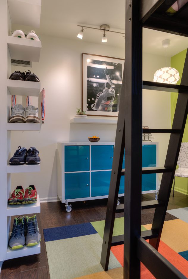 Consider including a shelf or bulletin board where kids can display items important to them, she said. When Katillac was working with a teenager who collects shoes, she put in shelving where he could set out some of his favorite pairs. That not only kept things orderly; it created a meaningful vignette in the room.